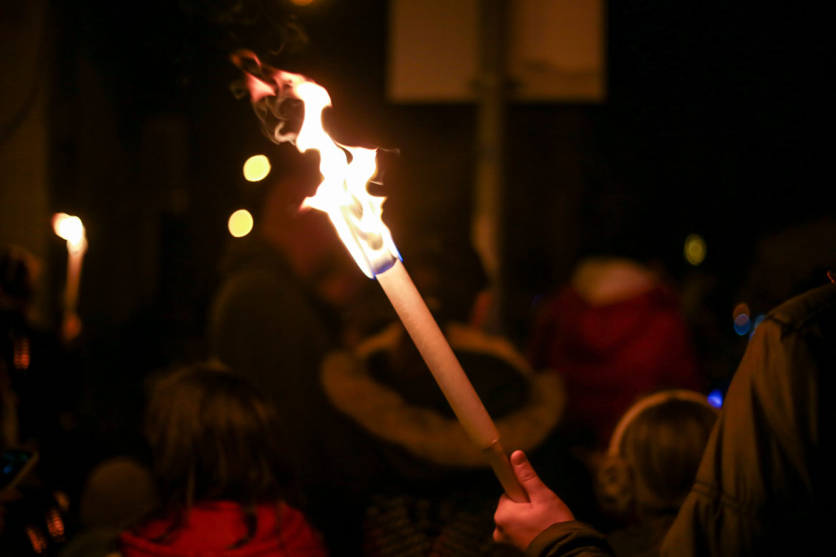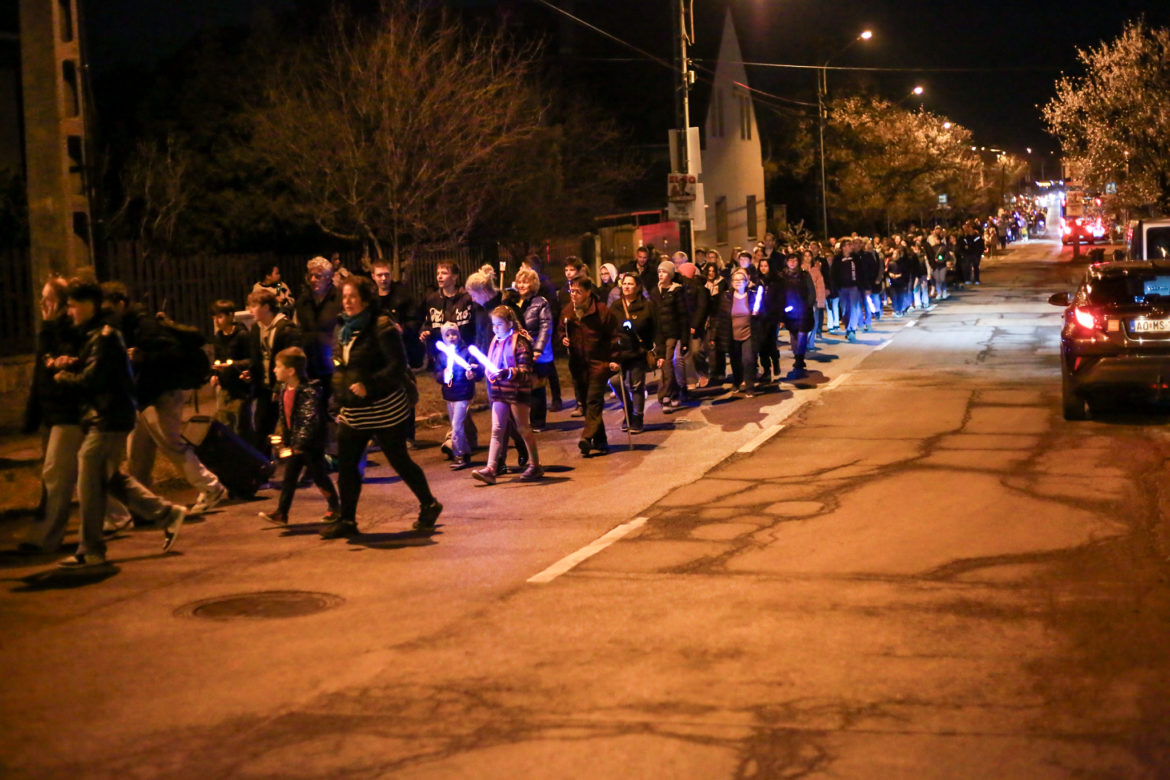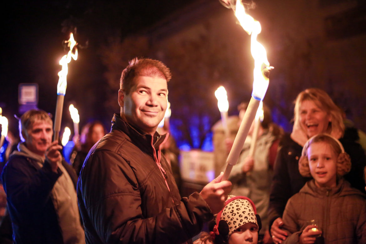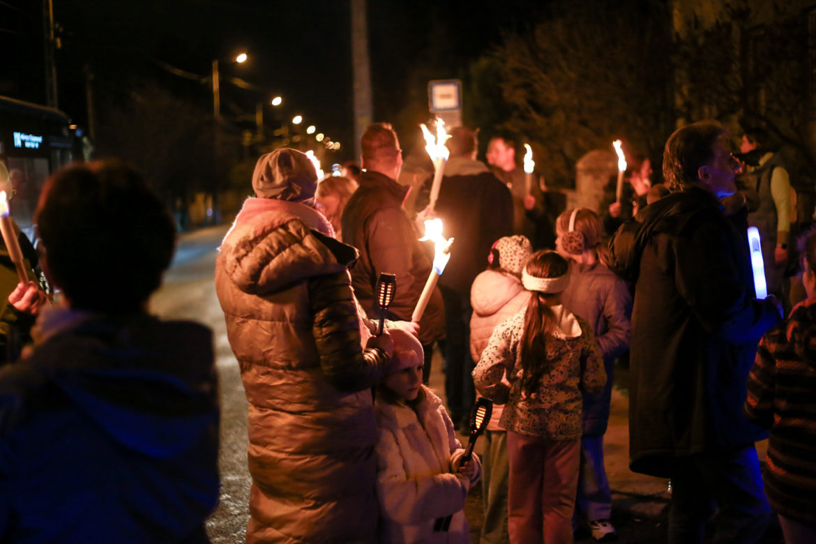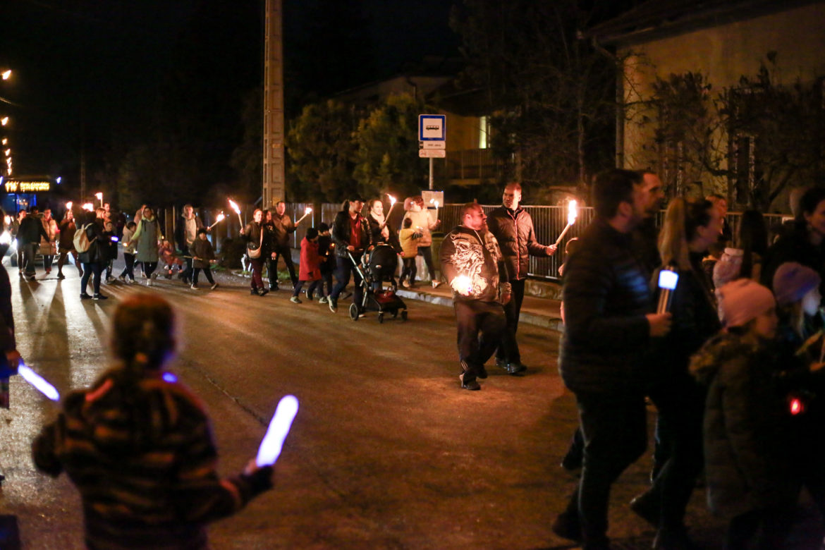 A Budafok-Tétényi Baross Gábor Általános Iskola 100. évfordulójának tiszteletére tartottak fáklyás felvonulást a Barosstelepen.